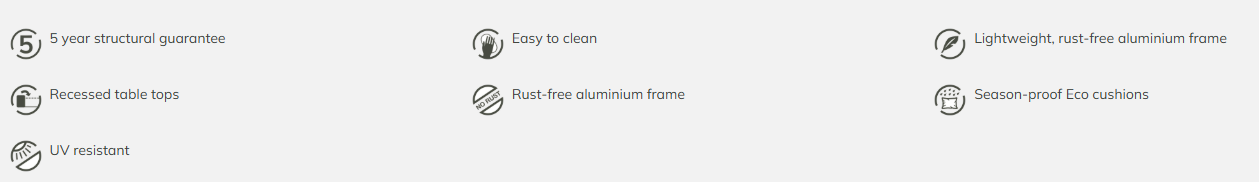 The classic design of our Tetbury range features Fawn Linen seat cushions made from our innovative Eco fabric, spun from recycled plastic bottles. The soft-touch cushions retain the hard wearing, season-proof quality that is synonymous with our outdoor fabrics. The all-weather, Nutmeg rattan is built on an aluminium frame, hence the furniture is lightweight, strong and rust-free.